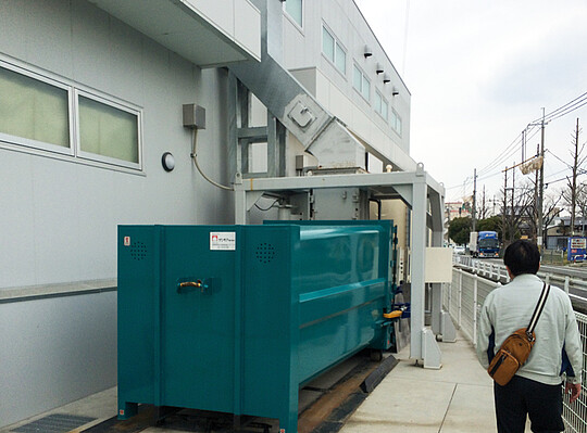 Da in japanischen Großstädten Platz Mangelware ist, müssen Entsorgungssysteme oft auf kleinstem Raum installiert werden. Darüber hinaus ist speziell in Japan die Genehmigung einer Entsorgungsanlage mit hohen Auflagen verbunden. So müssen z.B. alle Nachbarn in einem bestimmten Radius ihre Zustimmung geben, bevor die örtlichen Behörden überhaupt einen Genehmigungsantrag für eine solche Anlage bearbeiten. In Nagoya wird eine stationäre AVERMANN-Presse SP 12 eingesetzt, die Stanzabfälle in einen Wechselbehälter presst. Der Wechselbehälter ist mit seinen Abmessungen und dem Rahmenuntergestell speziell für die japanischen Hakenfahrzeuge ausgelegt. Zur schnellen An- und Abkopplung wird der Behälter mit Hilfe von Zentrierschienen in die richtige Position gebracht. Die Steuerung der Presse ist auf die örtliche Sonderspannung von 3 x 200 V und einer Frequenz von 60 Hz ausgelegt. Da auch Fußgänger direkt an der Entsorgungsanlage entlang gehen können, ist ein geräuscharmer Betrieb von besonderer Bedeutung. Mithilfe einer sogenannten „Flüsterpumpe“ konnte der Schalldruckpegel der Anlage auf unter 65 dB (A) gesenkt werden. Der Kunde ist mit dieser Lösung hoch zufrieden. Er hat seinen Entsorgungsprozess perfekt im Griff und konnte durch diese Anlage seine Entsorgungskosten um 25 % reduzieren.