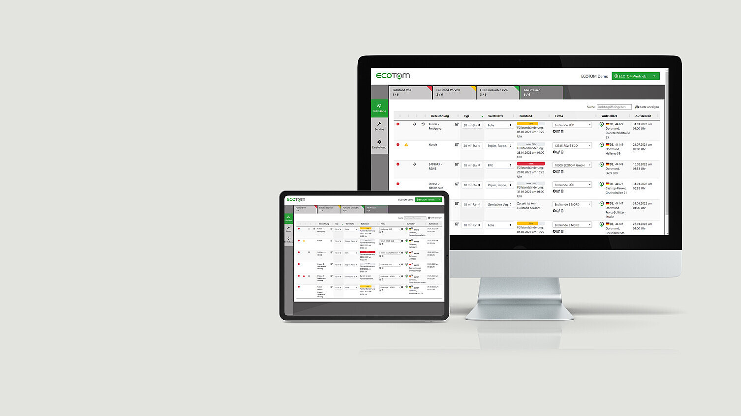 Das innovative und leistungsstarke Entsorgerportal ECOTOM.online löst zahlreiche Herausforderungen großer Entsorgungsunternehmen. Das System bietet Ihnen eine aussagekräftige 360-Grad-Rundumsicht über Ihr gesamtes eingebundenes Entsorgungsequipment. Je nach ausgerüsteter Hardware, z. B. mobile Presscontainer, werden GPS gesteuert Füllstandsinformationen und weitere relevante Zustandsdaten Ihres Equipments ermittelt und in einem Internetportal zur Anzeige gebracht. Via Mail oder direkt per Datenschnittstelle zu Ihrem ERP-System können alle aktuellen Daten angezeigt und mitgeteilt werden. Hierdurch haben Sie einen schnellen Überblick über den Zustand, können betriebswirtschaftliche Daten auswerten und auf dieser Grundlage fundierte Prozessentscheidungen treffen, die Ihre Abläufe umfassend optimieren. Mit der aktuellen AVOS M Modellreihe von Avermann haben Sie zudem die Möglichkeit des Fernzugriffs auf Ihren Maschinenpark um z. B. standortspezifische Einstellungen vorzunehmen.
