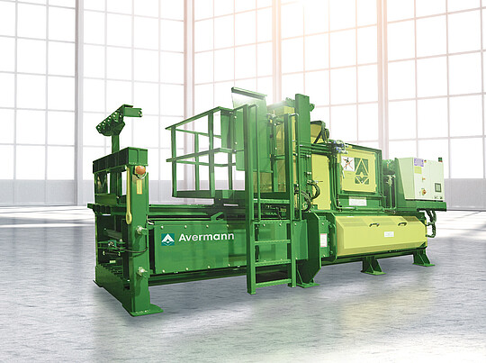Kanalballenpressen von Avermann sind weltweit die erste Wahl, wenn es um die Verarbeitung großer Wertstoffmengen geht. Ob beim Einsatz im Zentrallager, im Recyclingcenter oder auf Deponien: Die Anlagen garantieren eine platzsparende Ballenlagerung und einen höchst wirtschaftlichen Transport zum Endabnehmer. Kanalballenpressen von Avermann sind – je nach Anwendungszweck und Platzangebot – in verschiedenen Baugrößen, Leistungsstufen und Bauarten erhältlich. Das zu verpressende Material gelangt z. B. über ein Förderband in den Einfülltrichter der Kanalballenpresse. Eine im Einfüllschacht integrierte Lichtschranke löst den Pressvorgang aus. Die Geschwindigkeit des Presskolbens wird druckabhängig geregelt.