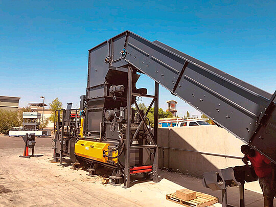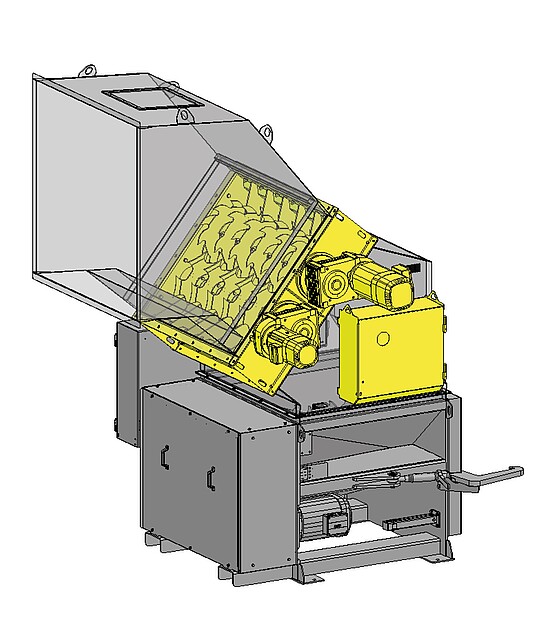 Ob Holz-Paletten oder verschiedenste Kartonage- und Papierfraktionen, der AVOS ZR ermöglicht es Ihnen auf kleinstem Raum das Arbeitsergebnis optimal an Ihre Ansprüche anzupassen. In Verbindung mit der integrierbaren Trichteranlage verfügt der Zerreißer über ein Schall- und Splitterschutzsystem, das für optimale Sicherheit im Betrieb sorgt. Perfekt geeignet für verschiedene Anlagen wie Kanalballenpressen und Zweiwegepressen sowie stationäre Pressen und Schneckenpressen.