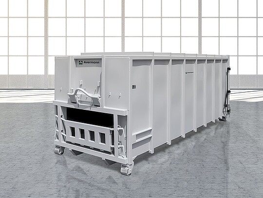 Gracias a sus contenedores de transporte acoplables, los compactadores estacionarios de Avermann convencen por su gran versatilidad e individualidad. Así se puede garantizar una eliminación continua de residuos sin tiempos de parada en la línea de producción. La capacidad máxima del contenedor de transporte acoplado al compactador fijo asciende a 32 m³. El flujo de trabajo general se controla mediante un sistema electrohidráulico integrado de bajo mantenimiento.
