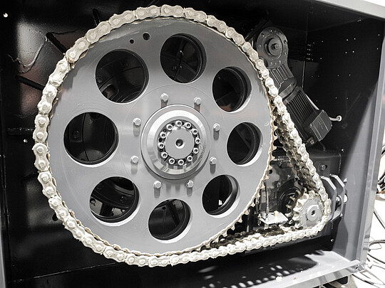 Votre concept d’élimination optimal pour des produits à compacteur expansifs : L’interaction du puissant motoréducteur et d’un entraînement à chaînes optimal assure un degré de compactage très élevé. Ainsi, vous pouvez minimiser vos coûts de transport d’évacuation. En outre, le mouvement de rotation continu de l’arbre de vis assure un remplissage continu.