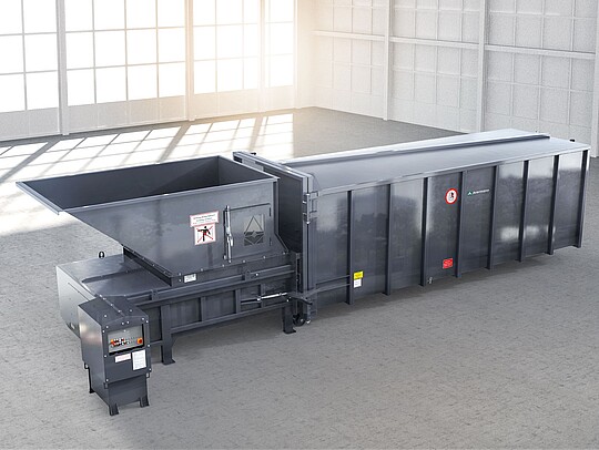 Dankzij aan te koppelen transportcontainers overtuigen stationaire persen van Avermann door de grote mogelijkheid tot variatie en op maat gemaakte aanpassingen. Zo kan een voortdurende afvalverwerking zonder stilstandtijd van de voorliggende productiebaan worden gegarandeerd. De maximale inhoud van de transportcontainer die aan het vast geïnstalleerde persdeel is gekoppeld, bedraagt 32 m³. Het gehele proces wordt gestuurd door een geïntegreerde, onderhoudsarme elektro-hydraulische installatie.