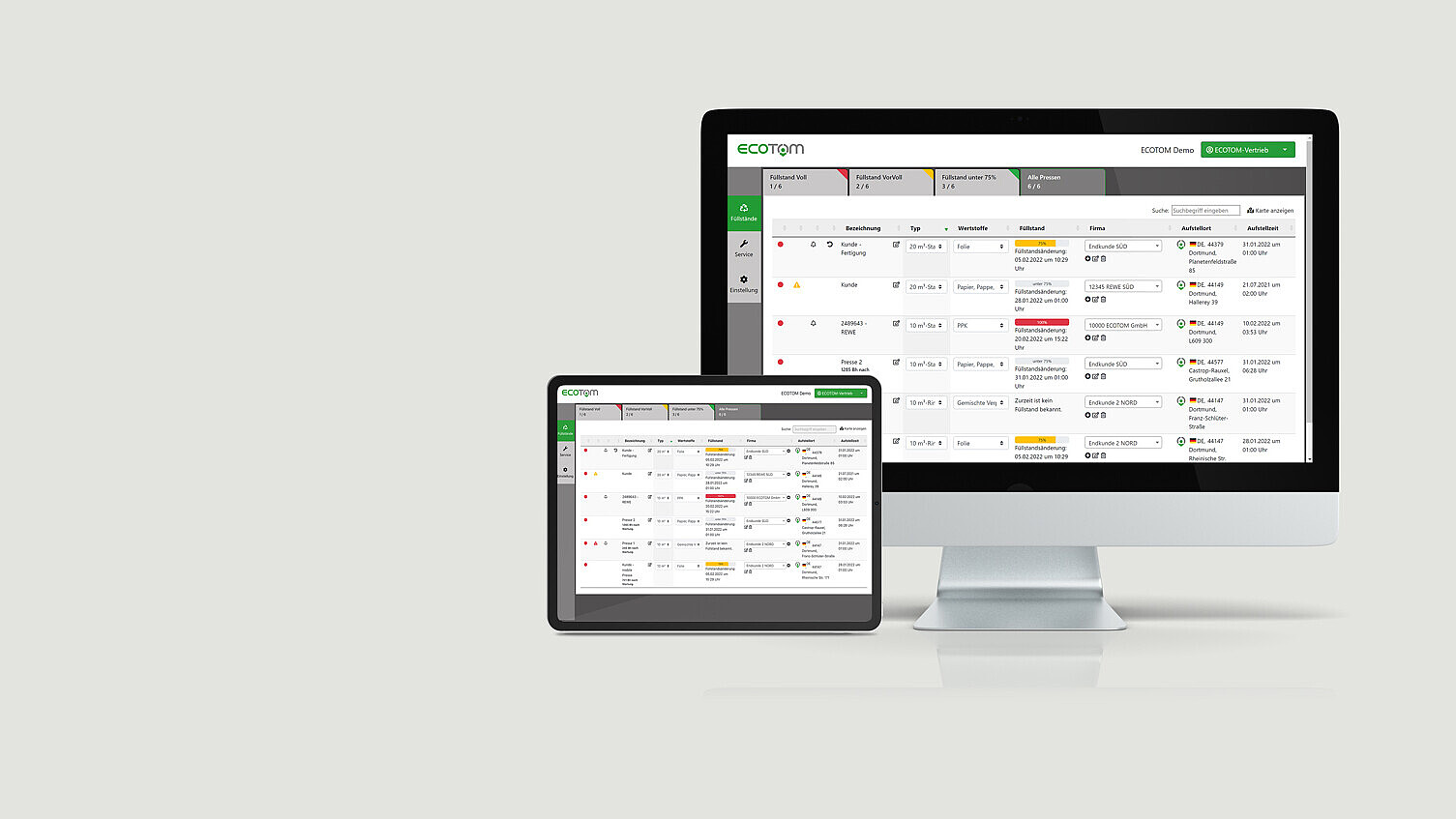 Инновационный и высокоэффективный портал управления отходами Telematik360 решает многочисленные задачи, с которыми сталкиваются крупные предприятия по утилизации отходов. Система предлагает вам 360-градусный обзор всего интегрированного оборудования по переработке отходов. В зависимости от комплектации аппаратных средств информация об уровне заполнения, например, мобильных пресс-контейнеров, которая передается на систему GPS, и другая соответствующая информация о состоянии вашего оборудования, определяется и отображается на интернет-портале. Все текущие данные могут отображаться и передаваться в вашу систему ERP по электронной почте или напрямую через интерфейс данных. Это позволяет вам получить быстрый обзор состояния, оценить технико-экономические данные и на их основе принять тщательное решение о выполнении процессов, которое значительно оптимизируют их протекание.